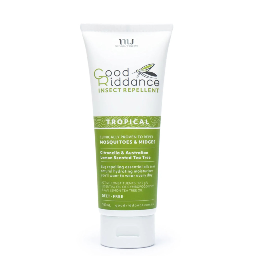 Good Riddance Tropical Insect Repellent is an effective natural insect repellent which provides long-lasting, tropical strength protection against mozzies, midges and sandflies that can carry harmful viruses such as Ross River and Dengue.